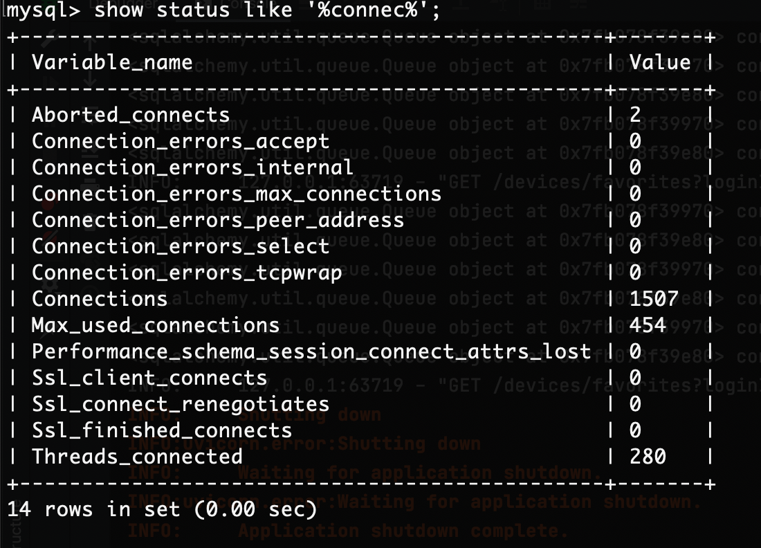 - a. (MySQLdb._exceptions.OperationalError) (1040, 'Too many connections')