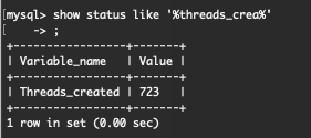 thread_cache_size를 적절하게 조절해서 아래의 Threads_created수를 줄여야 좋은 성능을 낼수있다.
